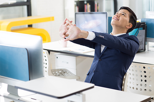 운동의 건강 효과 중 하나는 혈류의 흐름을 개선하는데 있다. 스트레칭은 혈액이 몸의 구석구석으로 잘 흐르도록 돕는다. 또 관절의 가동 범위를 넓히고 운동 부상을 막는다. 스트레칭은 따로 시간을 내서 해도 좋지만, 일을 하는 도중 짬을 내 제자리에서 해도 된다. 자리에 그대로 앉아 할 수 있는 동작들도 있고, 주변 사람들에게 방해가 되지 않는 선에서 자리에서 일어나 스트레칭을 해도 좋다. 단 반동을 이용한 스트레칭은 삼가도록 한다.