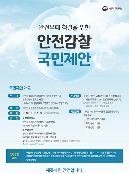 접수된 의견은 ‘범정부 안전 분야 반부패협의회’에서 검토해 내년도 안전감찰 및 반부패 이행과제로 선정·추진하고 그 결과를 공개한다.