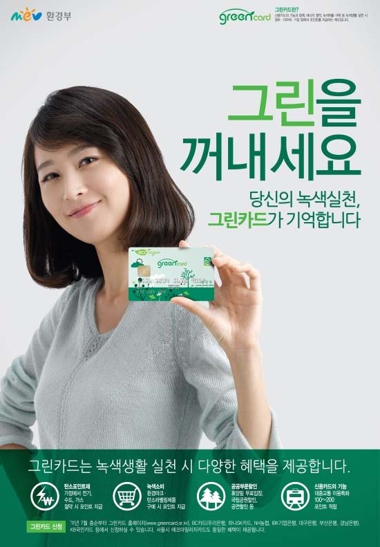 그린카드는 환경마크·탄소성적표지 등을 인증 받은 제품 구입, 대중교통 사용, 에너지 사용량 감축 등 저탄소·친환경 소비생활을 실천하면 포인트를 지급하는 제도로 2011년 첫 출시됐다.