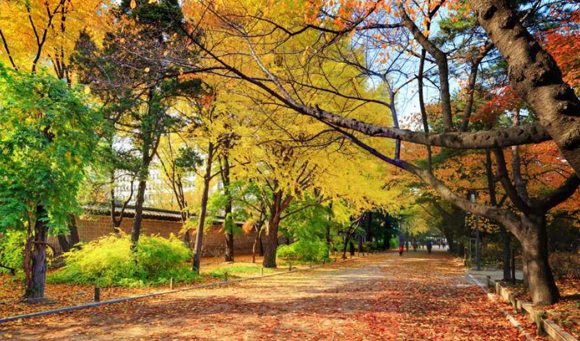 덕수궁 입구 가을 절경. (사진=문화재청)이를 위해 문화재청은 궁궐에서 가을 단풍을 만끽할 수 있는 주요 시기와 나들이 장소로 창덕궁 후원, 창경궁 춘당지 주변, 덕수궁 대한문∼중화문 간 관람로 등을 추천한다.