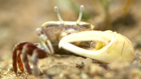 [일간환경연합 장영기 기자]국립공원관리공단(이사장 박보환)이 한려해상국립공원 남해군 고현면 일대의 연안습지(3,026㎡)에서 살고 있는 멸종위기 야생생물 II급 흰발농게의 생태를 올해 3월부터 6개월간 조사한 결과, 서식밀도가 전년대비 4배 이상 증가하여 200여개체 이상 있는 것으로 확인했다.