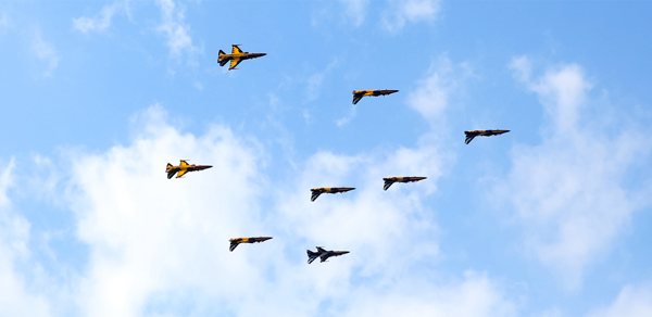 블랙이글스 축하비행 모습.행사기간 동안에는 드론레이싱, 패러글라이딩, 스카이다이빙 등 6개 종목 국토부장관배 대회가 개최된다.