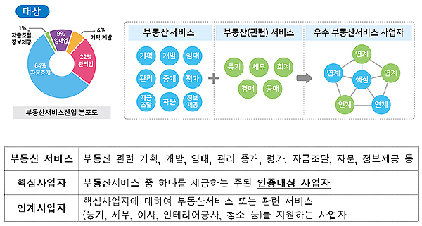 이번에 인증 사업자로 선정된 핵심사업자에는 정부인증서와 명판을 수여하고, 업무표장등록이 완료된 정부 인증 마크가 부여되며, 부동산 관련 공공기관을 통해 다양한 인센티브도 제공받게 된다.