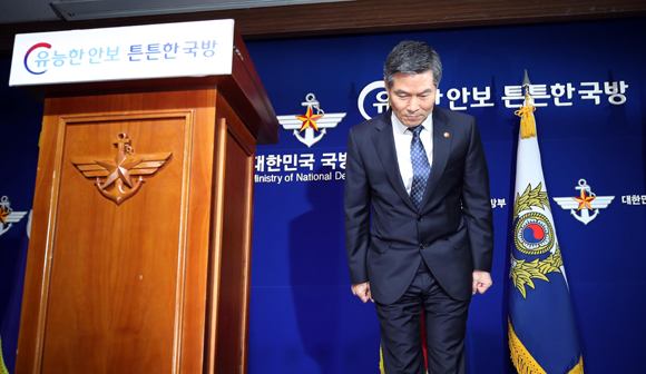 정경두 국방부 장관이 7일 오전 서울 용산구 국방부 브리핑룸에서 5·18 민주화운동 당시 계엄군이 성폭행을 자행했다는 사실이 국가기관 공식 조사로 확인된 것과 관련해 사과문 발표 전 인사를 하고 있다. (사진=(c) 연합뉴스) |