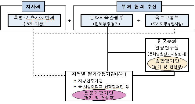 문화영향평가는 각종 정책·계획 수립 시, 해당 정책·계획이 문화적 관점에서 국민의 삶의 질에 미치는 영향을 평가해 정책적 대안을 제시해 주는 제도로서, 올해 5월에도 2017년에 선정된 도시재생 뉴딜사업지 18곳(중심시가지형)을 대상으로 실시한 바 있다.