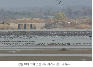 종별로는 쇠기러기(18만 858마리), 가창오리(14만 9,875마리), 큰기러기(7만 3,406마리), 흰뺨검둥오리(5만 3,783마리)의 순으로 관찰됐으며, 지역별로는 영암호(12만 4,081마리), 간월호(8만 4,991마리), 철원평야(8만 2,745마리), 부남호(4만 6,306마리), 낙동강하구(3만 2,513마리)의 순으로 도래한 것이 확인됐다.