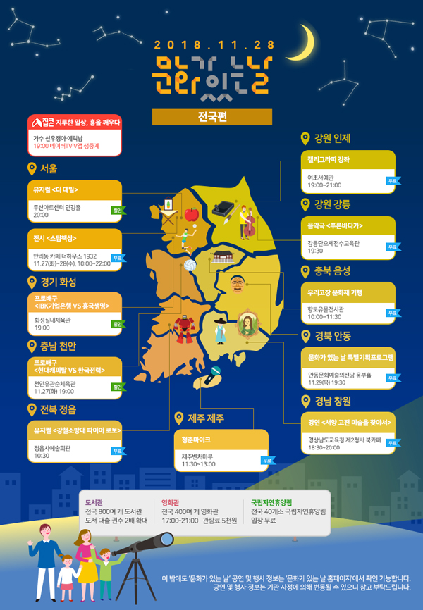 오는 28일 11월 ‘문화가 있는 날’과 해당 주간에는 전국에서 총 2602개(23일 기준)의 문화행사가 국민들과 만난다.