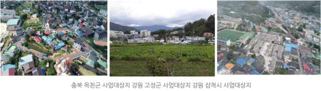 대표적으로 충북 옥천군 사업 대상지는 인근에 공원, 학교, 공공청사, 체육·문화시설 등 생활편의시설이 위치하여 거주환경이 매우 양호한 곳이다.