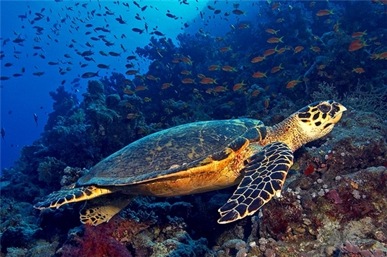 매부리바다거북은 구부러진 부리가 매의 부리를 닮아 붙여진 이름으로, 주로 열대해역에 서식하지만 우리나라 남해안까지 간헐적으로 회유하는 특성을 보인다.
