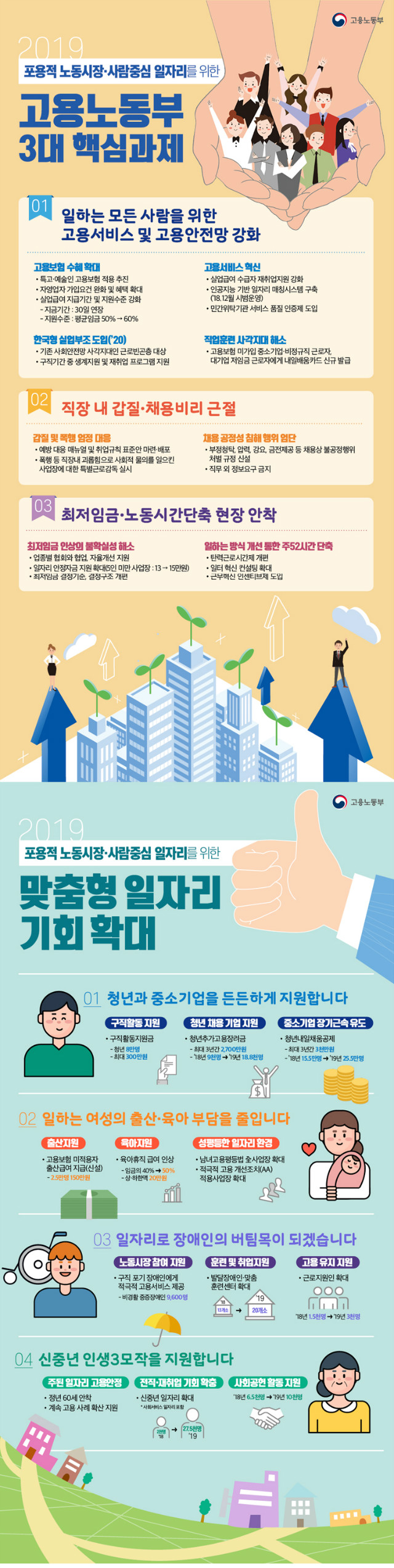 [일간환경연합 신상미 기자]포용적 노동시장·사람중심 일자리를 위한 2019년 고용노동부 3대 핵심과제를 소개합니다!