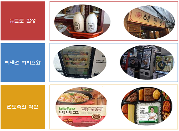 서비스 형태가 영업의 중요한 부분을 차지하는 외식분야에서 ‘비대면’의 의미는 사람 중심의 서비스에서 기계중심의 서비스로의 이동으로 대표되고 있으나 외식업계에서는 사람중심의 고급화된 서비스와 편의성에 초점을 맞춘 서비스로 양극화 질 뿐만 아니라 이에 따른 산업구조의 변화가 빠르게 진행될 것으로 전망하고 있다.