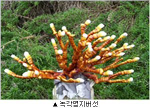 녹각영지버섯영지버섯은 성인병 예방 등 다양한 기능성을 가지고 있어 불로초로 불리는데 일반적인 영지버섯은 심장 모양의 편각형입니다.