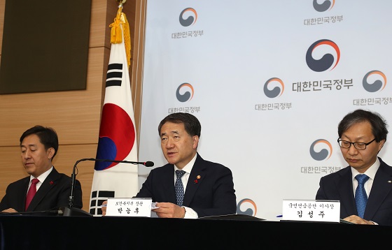박능후 보건복지부 장관이 14일 정부서울청사 별관에서 브리핑을 열고 제4차 국민연금 종합운영계획안을 설명하고 있다.(사진=(c) 연합뉴스) |