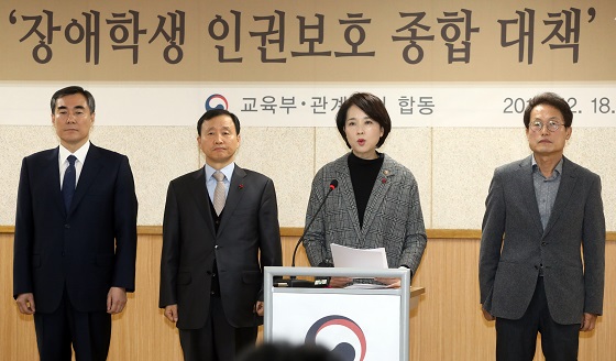 유은혜 사회부총리 겸 교육부 장관은 18일 서울성북강북특수교육지원센터에서 이러한 내용을 담은 ‘장애학생 인권보호 종합대책’을 발표했다.