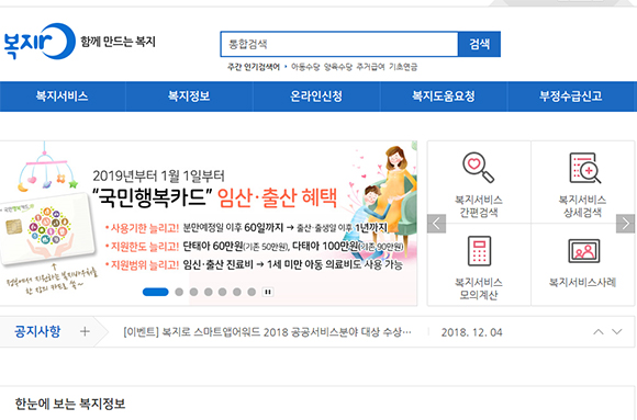 ‘복지로(bokjiro.go.kr)’ 첫 화면. |