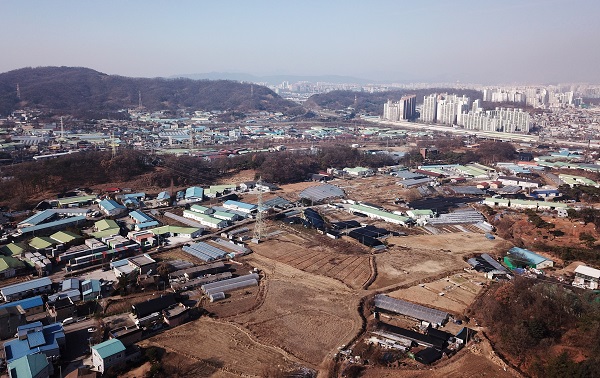 정부가 경기도 남양주와 하남, 인천 계양에 신도시를 건설한다. 공공택지 조성을 두고 논란이 일었던 과천에도 중규모의 택지를 조성한다. 신도시의 면적은 남양주가 1134만㎡, 하남은 649만㎡, 인천 계양은 335만㎡이다. 사진은 19일 오후 경기도 하남시 교산동 일대 모습. 하남 교산지구는 천현동, 교산동, 춘궁동, 상·하사창동 등 일대로 3만 2000가구가 공급된다.(사진=(c) 연합뉴스) |