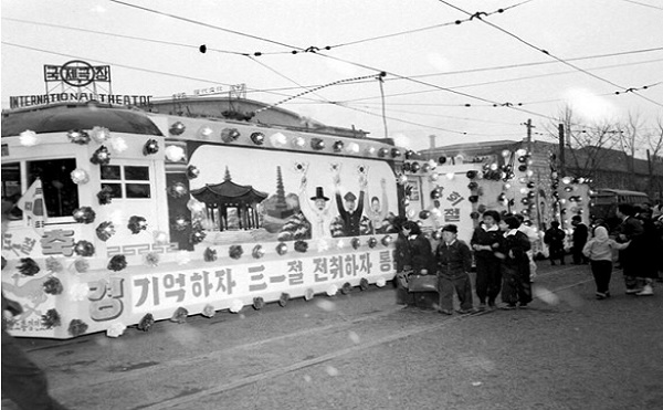 제39회 3·1절 기념 거리 행렬(1958년). |
