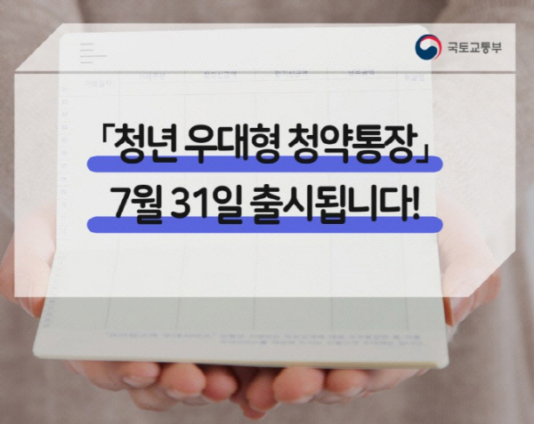 국토교통부(장관 김현미)는 올해 7월「청년 우대형 청약통장」출시 하였으며, 보다 많은 청년이 청년 우대형 청약통장에 가입할 수 있도록 연령 및 세대주 요건을 개선하였다.