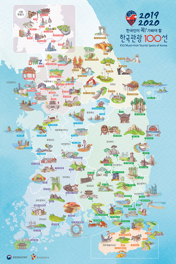 2019∼2020 한국관광 100선 지도. (인포그래픽=문화체육관광부) |