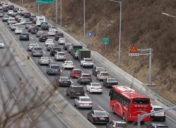 지난 1일 강원 동해안에서 새해를 맞이한 행락객들이 귀경길에 오르면서 영동고속도로 인천방면이 극심한 지·정체 현상을 보이고 있다. 4월부터는 이런 고속도로 정체구간에 대한 내비게이션 음성안내가 가능해진다.(사진=(c) 연합뉴스) |