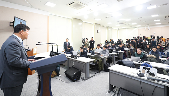 노태강 문화체육관광부 제2차관이 9일 오전 서울 종로구 세종대로 정부서울청사 별관에서 열린 빙상 조재범 전 코치 심석희 성폭행 파문 관련 브리핑에서 후속 대책을 발표하고 있다. (사진=(c) 연합뉴스) |