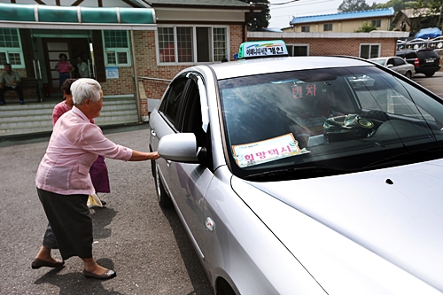 100원 희망택시를 이용하는 어르신들. (사진=서천군청) |