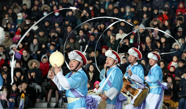 지난해 설 연휴를 맞아 서울 용산구 국립중앙박물관을 찾은 관람객들이 풍물 공연을 감상하고 있다. |