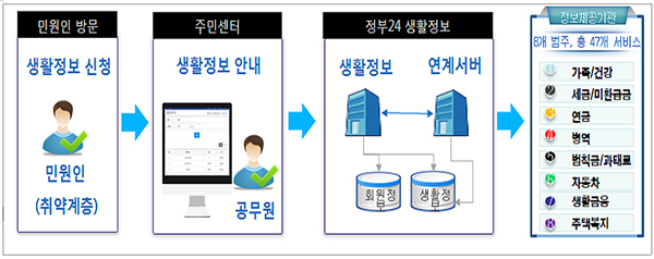 주민센터를 방문한 민원인이 요청할 경우, 담당공무원이 정부24 ‘민원처리운영창구(http://intra.gov.kr)’에서 동의를 받아 생활정보를 제공하게 된다.