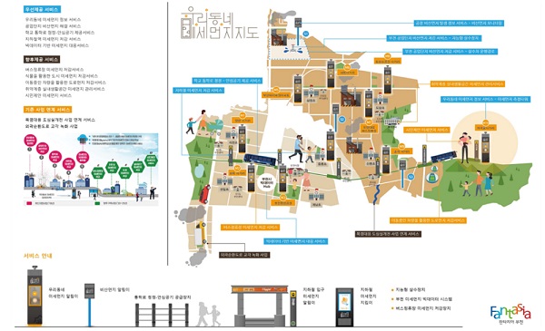 구체적인 미세먼지 저감 서비스는 관내 레미콘공장 주변 및 도심 학교통학로, 지하철역 등 시민 관심지역에 대해 우선 실시하고, 빅데이터 시스템과 연계한 지능형 저감장치, 스마트 살수차 등을 활용할 계획이다.