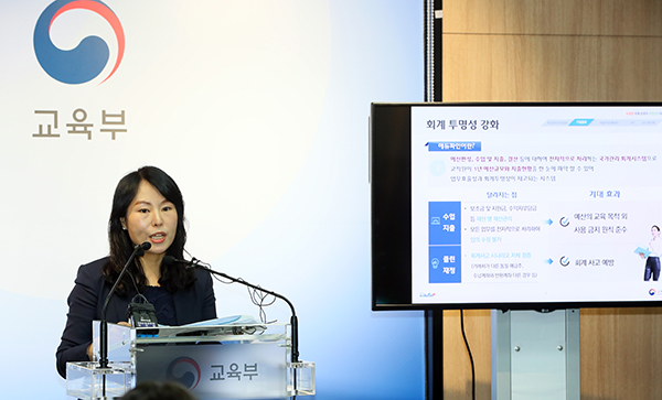 세종시 정부세종청사 교육부에서 이지은 사립유치원공공성강화지원팀장이 오는 3월 1일부터 사립유치원 등에 적용될 국가관리 회계시스템 ‘에듀파인’에 대해 설명하고 있다.(사진=(c) 연합뉴스) |