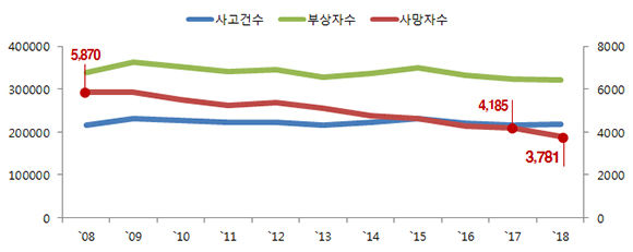 [일간환경연합 김경훈 기자]경창청과 국토교통부는 지난해 교통사고 사망자는 3781명으로 전년도 4185명에 비해 9.7% 감소했다고 3일 밝혔다.