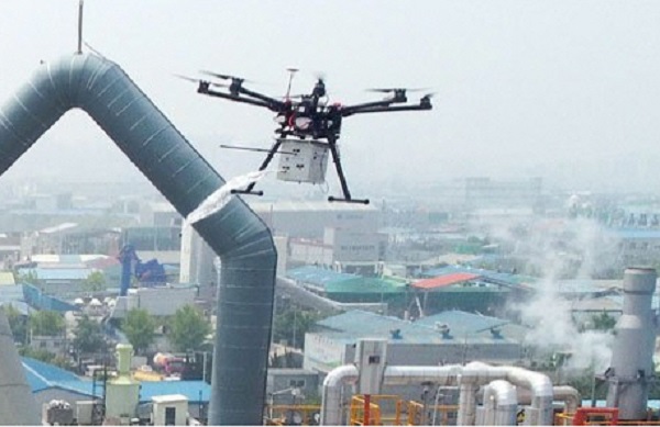 드론 실증도시의 한 사례로 드론이 지역별 미세먼지 측정하는 모습. |