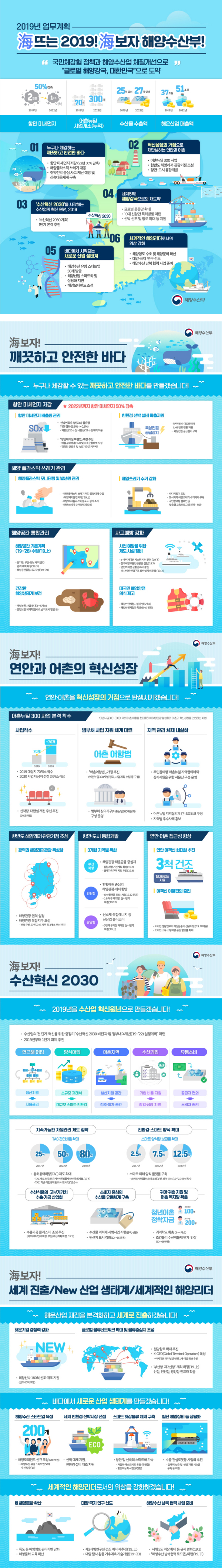 [일간환경연합 장민주 기자]다음은 2019년 해양수산부 업무보고입니다. 인포그래픽 뉴스로 한눈에 확인 할수있습니다.