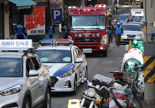 한 지자체 주최로 ‘주민과 함께하는 소방차 통행로 확보’ 훈련이 열리고 있다.(사진=(c) 연합뉴스)이에 따라 신고전용 앱 등을 통해 불법 주·정차를 신고하면 현장 확인없이 즉시 과태료를 부과하는 주민신고제가 전국적으로 확대 도입될 전망이다.