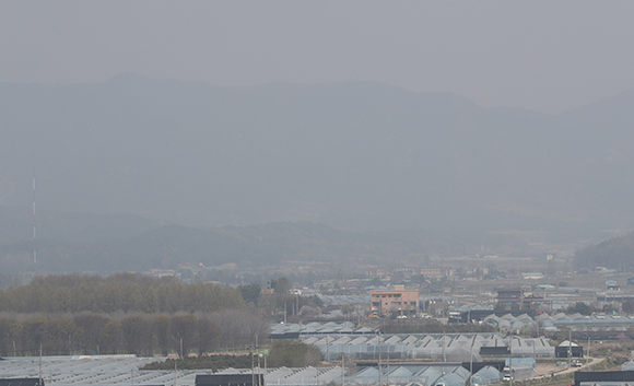 농촌 지역 일대 밭과 비닐하우스 너머로 뿌연 먼지가 끼어 있다. (사진=(c) 연합뉴스) |