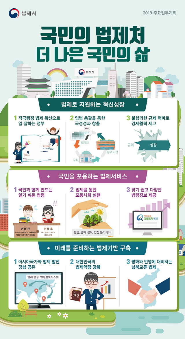 [일간환경연합 장민주 기자]더 나은 국민의 삶을 위해 법제처 2019년 주요업무계획을 알려드려요.
