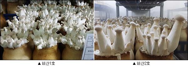 2013년 육성한 ‘비산1호’는 수량이 높고, 2014년 육성한 ‘비산2호’는 버섯 모양이 좋은 특징이 있다.