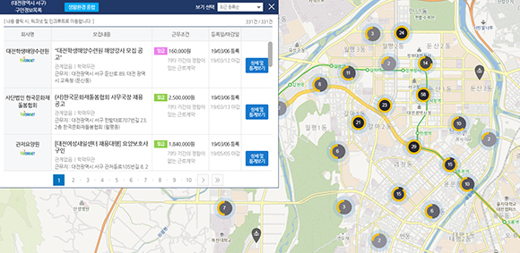 일자리 맵 서비스를 이용해 내 주변 일자리 찾기일자리 맵은 취업정보포털의 구인업체 정보를 지도로 표시해 제공하는 서비스다.