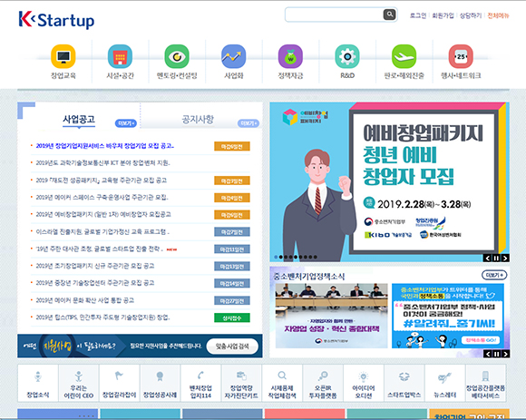 ![]() 창업넷 ‘K-스타트업’ 메인 화면 |