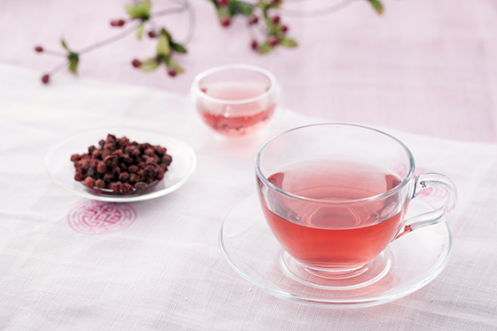 오미자는 단맛, 신맛, 매운맛, 쓴맛, 짠맛의 5가지 맛을 가졌는데 그 중에서 신맛이 강하다. 오미자에 들어있는 ‘쉬잔드린’ 성분은 거담제로 작용을 하기 때문에 기도를 깨끗하게 하며, 폐에서 분비된 점액을 제거해 호흡기를 건강하게 유지할 수 있도록 도와 감기나 천식 등 호흡기 질환에 좋다.
