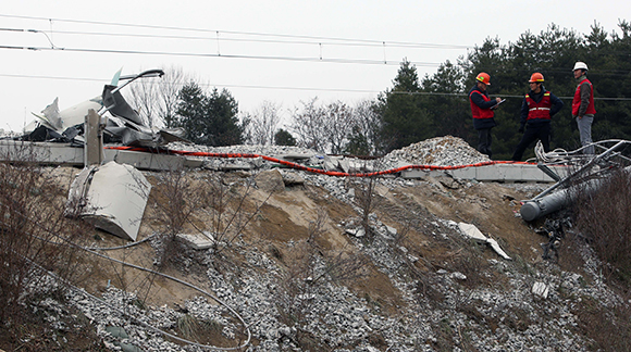 지난해 12월 KTX 열차 탈선사고가 발생했던 강원 강릉시 운산동 사고현장에서 사고원인을 밝히기 위한 조사가 진행되고 있다. (사진=(c) 연합뉴스) |