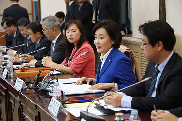박영선 중소벤처기업부 장관이 17일 정부서울청사에서 열린 규제자유특구심의위원회에서 발언하고 있다. (사진=(c) 연합뉴스) |