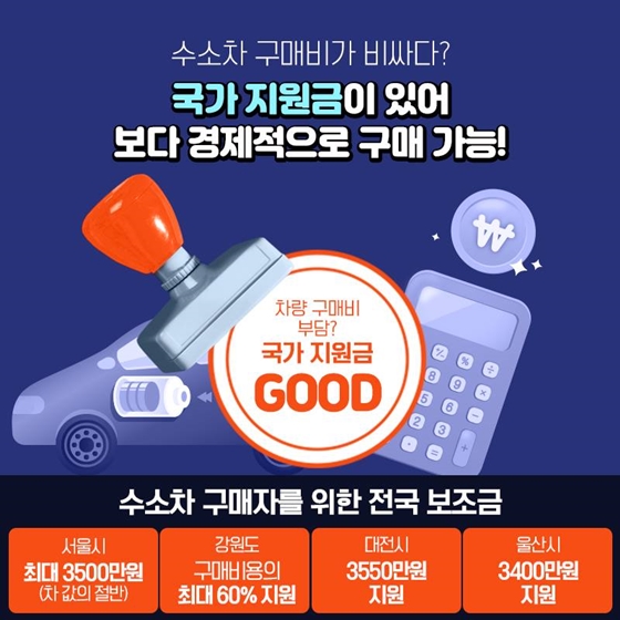 - (서울시) 최대 3,500만원 (차 값의 절반)