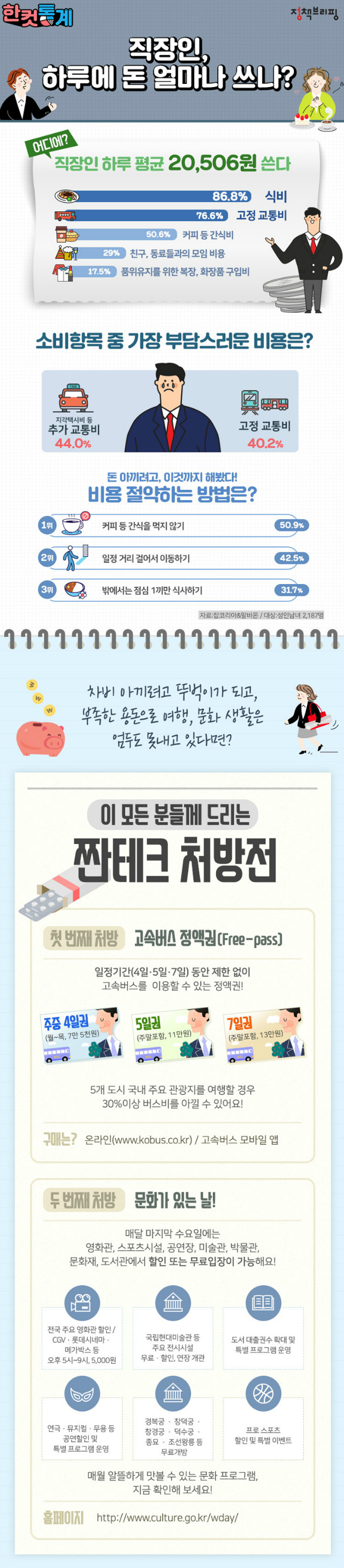 잡코리아와 알바몬이 성인남녀 2,187명을 대상으로 조사한 결과, 직장인은 하루 평균 20,506원을 썼습니다. 가장 많이 차지하는 항목은 '식비'로 무려 86.8%를 차지했습니다.