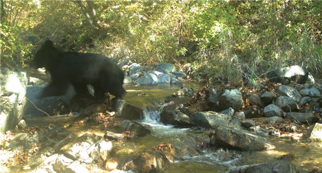 반달가슴곰 1마리가 국립생태원 연구진이 2014년부터 설치한 92대의 무인생태조사 장비 중 하나에 찍힌 것이다. 무인생태조사 장비는 탐지기기(센서)가 장착된 사진기로 온혈물체(동물)의 움직임을 포착하면 자동으로 사진을 찍는다.