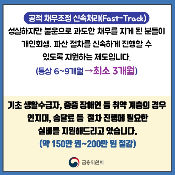 열심히 일하고 있지만, 빚으로 힘들었던 A 씨. 마침 개인 회생 파산절차 신용회복위원회의 신속처리(Fast-Track)지원을 알게 되어 법원에 개인 파산을 신청할 수 있습니다.