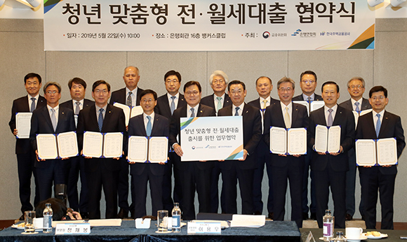 최종구 금융위원회 위원장은 22일 서울 은행연합회에서 13개 시중은행(KB, 신한, 하나, 우리, NH, 기업, SH, 부산, 경남, 대구, 광주, 전북, 카카오), 주택금융공사(주금공) 관계자들이 참석한 가운데 청년 맞춤형 전·월세 대출 협약식을 열고 이같이 밝혔다.