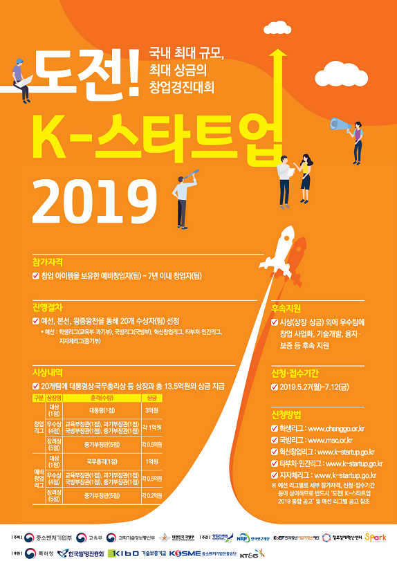 이어 9~10월 본선, 11월 왕중왕전을 거쳐 최종 수상팀 20팀을 결정할 계획이다. 왕중왕전은 오는 11월 개최되는 글로벌 스타트업 페스티벌 ‘Come UP 2019’에서 진행될 예정이다.
