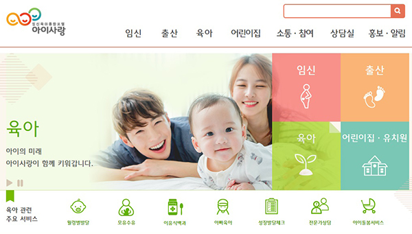 임신육아종합포털 아이사랑 누리집 초기 화면. |