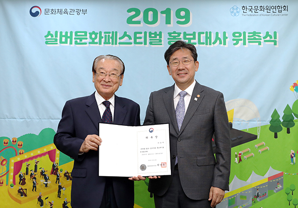 [일간환경연합 신상미 기자]문화체육관광부는 어르신들이 문화예술을 통해 ‘행복한 삶’을 만들어갈 수 있도록 돕고, 이를 홍보하기 위해 12일 배우 이순재 씨를 ‘2019 실버문화’ 홍보대사로 위촉했다.